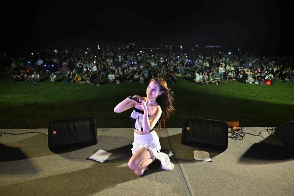 當晚活動觀眾席地而坐,音樂在自然間流動,不少民眾隨節奏舞動、沉浸其中。現場還特別設計「放閃星任務」拍照活動,不論與誰合影只要夠創意,就能上傳參加兌換限定伴手禮,吸引大家踴躍參與,為這場浪漫夜晚留下最閃耀的畫面。