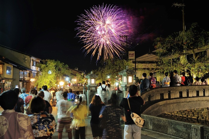 城崎溫泉是日本關西最有風情的溫泉小鎮之一,穿著浴衣漫步於溫泉街上是當地旅遊必備行程,尤其到了夏季穿著浴衣散策更是愜意。不似大多溫泉鄉傍晚就已悄然無聲,夜裡的城崎溫泉除了外湯,還有許多伴手禮店、餐廳等店家都有營業,還有可體驗日式射擊遊戲的復古遊樂場店舖等,天黑後帶著孩子出來散步遊玩也絕不無聊,可充分感受日本文化的魅力。7月底至8月底限定期間,平日晚間更會在溫泉街上施放煙火,為溫泉街增添夏日氛圍。今年夏季不妨到城崎溫泉感受日本夏日風情!