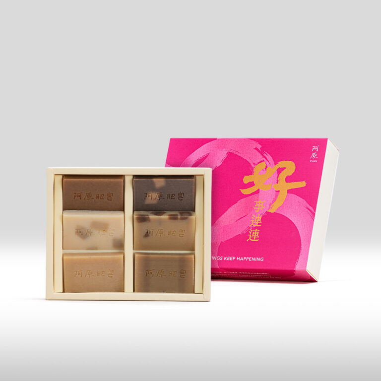 每盒禮盒封面之圓,皆由阿原北海明珠的青草師與肥皂師親筆手寫,象徵職人精神與手作溫度,讓祝福從雙手傳遞。內含多款人氣手工皂,搭配寓意命名如「好事連連」、「好運來」及「好福氣」,是旅人自用與送禮的首選。