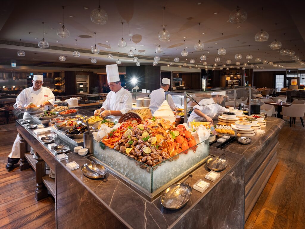 全台自助餐霸主凱菲屋則於平日晚餐及假日時段推出夏日限定- 鮮香酸辣系海鮮吃到飽,包含以西班牙料理白酒、百里香、檸檬提味的「香料白酒鮮蝦」、香辣開胃的川式經典「乾鍋香辣蝦」,以及結合台灣九孔與雲林酸菜的「金湯酸菜九孔鮑海鮮湯」等,多重菜色麻香酸爽、美味意猶未盡。