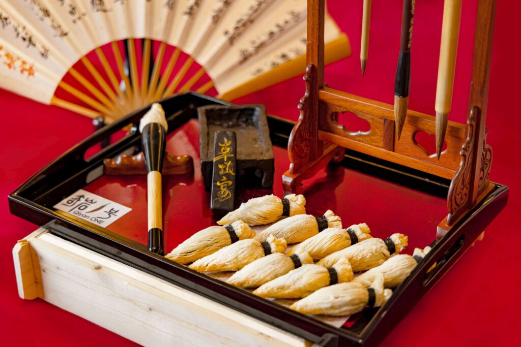 主廚團隊以宋代文豪蘇東坡的詩文與生活哲學為軸,設計十道主題料理,從點茶開場,到東坡肉壓軸,循味而行,探訪東坡筆墨之外的生活雅趣。開席一盞「東坡點茶」,重現宋人茶道,「茶粉調膏、擊沫成乳,宛若雪霧輕旋,芳香繚繞」,茶不僅為飲,更為一種儀式與審美,讓整場宴席由心而靜、由口而雅。