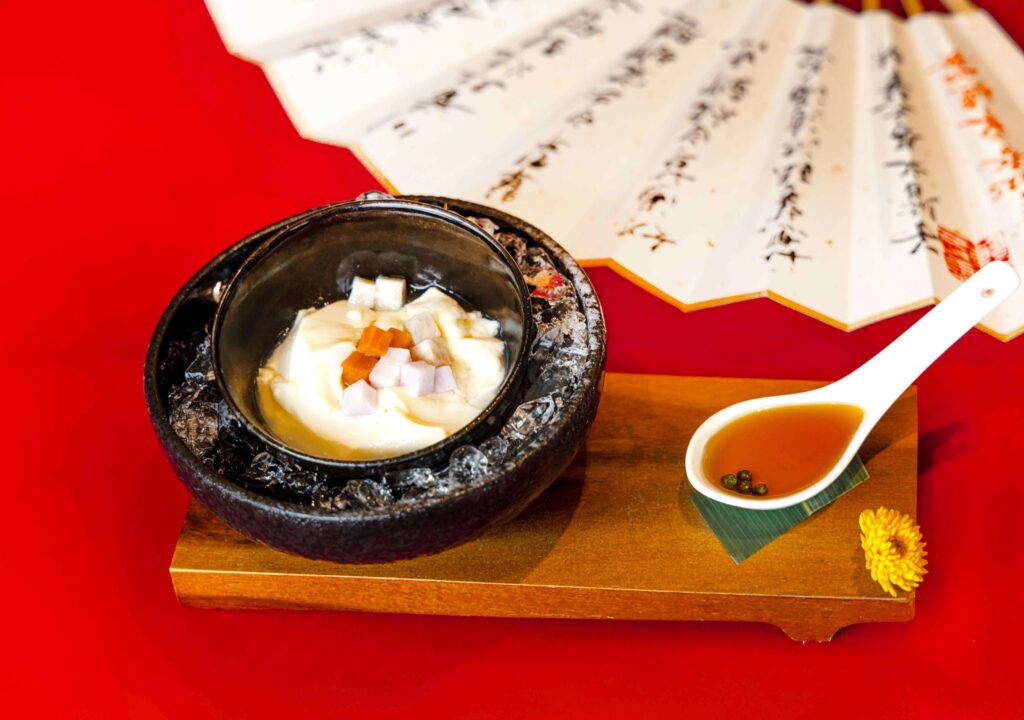 甜點「東坡餅」取材傳說中黃州名餅,製作繁複的「毛筆酥」搭配棗泥餡,香甜酥脆;另有花椒鹽滷豆腐腦,綿密柔潤,鹹甜交錯,餘韻悠長。