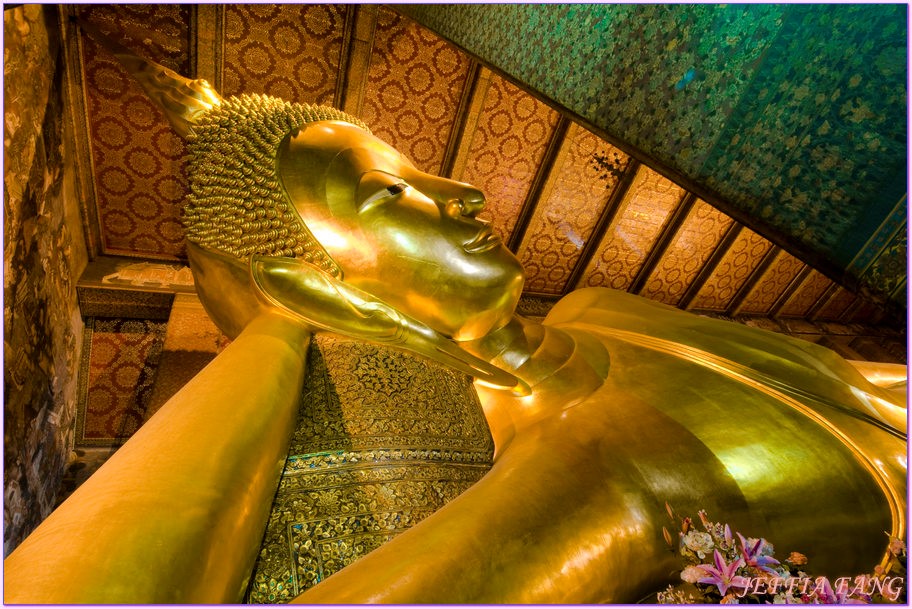 從8號塔田碼頭出來步行5分鐘就到了臥佛寺。「臥佛寺Wat Pho」又稱菩提寺,是泰國最大最古老的廟寺,從大城王朝就留下來,由國王拉瑪一世於1785年重建。寺內除了供奉1000多尊佛像及知名的釋迦牟尼臥佛像外,還有個研究草藥及健康按摩中心,臥佛寺傳授的古式指壓非常正統,開班授課以來學員很多,附近有不少店家標榜從臥佛寺學成的指壓店深受觀光客的青睞。
