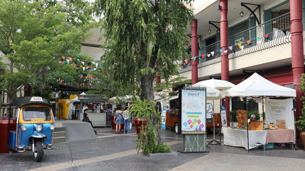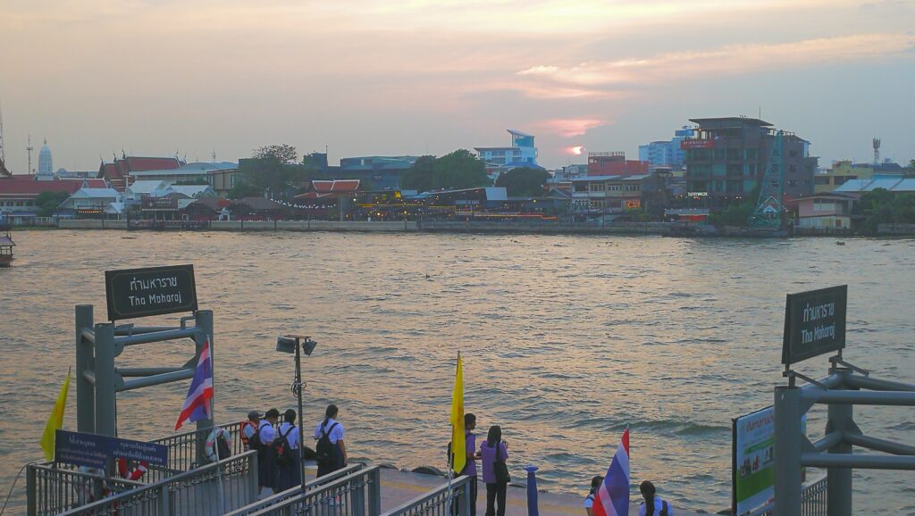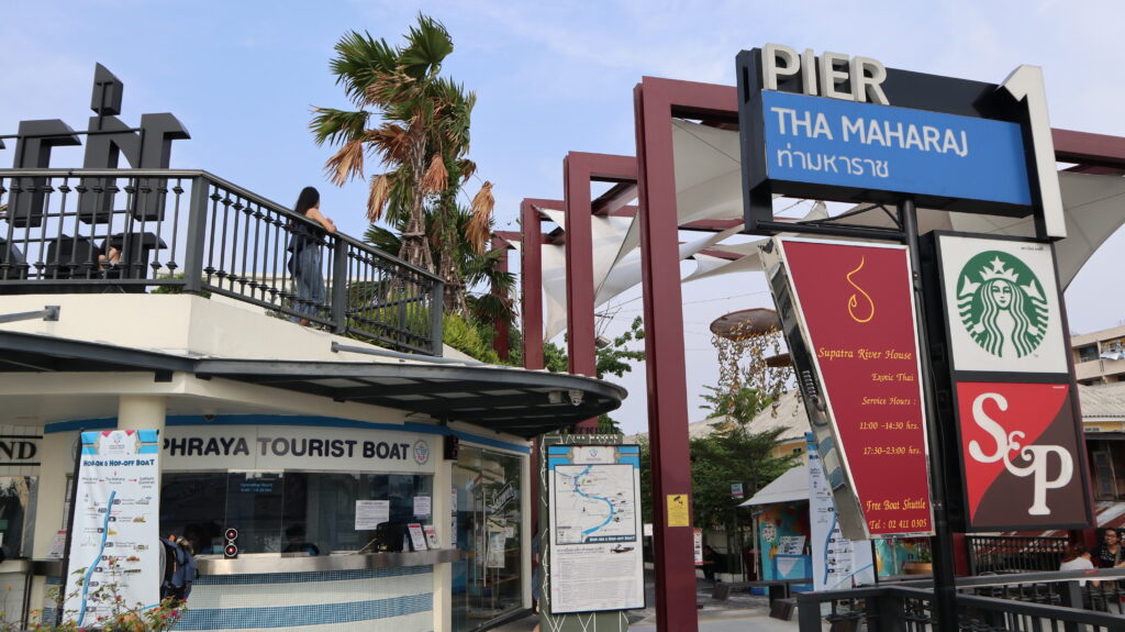 從大皇宮步行約600公尺就可抵達瑪哈拉碼頭文青市集,其前身是湄南河運輸和貿易中心,後來改造成河濱商城。占地三千多平方公尺,一共有七棟建築,內有露天餐廳,零售商店、河畔廣場和花園,算是湄南河畔碼頭交通結合觀光的旅遊景點。