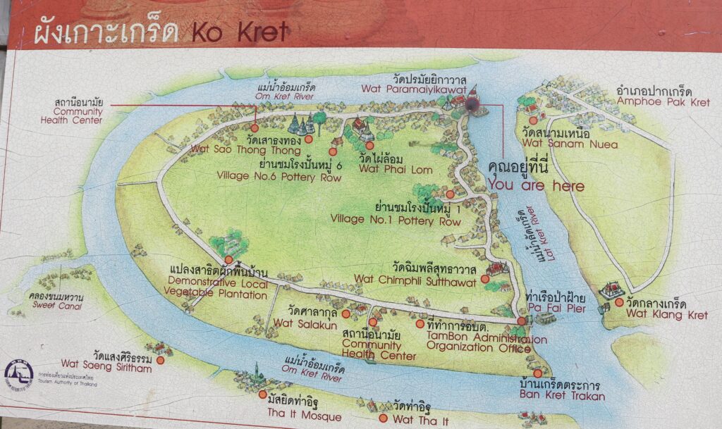 據說島上最原始的居民是西元六到十世紀統治泰國中部的孟族後裔,孟族最擅長陶製工藝,加上湄南河區域的土質較為濕軟,非常好捏陶,他們常常隨手抓一把泥土立馬就可以抓出一個形狀,所以這裡又稱之為『陶土島』。