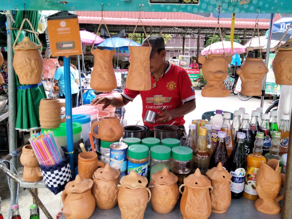 逛累了不用擔心,可以在許多小吃攤、河邊餐廳及CAFÉ休息片刻,如果買飲料他們還會裝在陶器中讓觀光客帶走,挺有趣的。