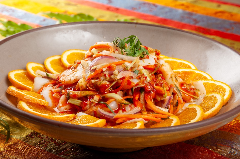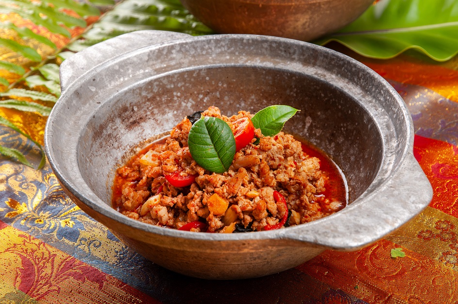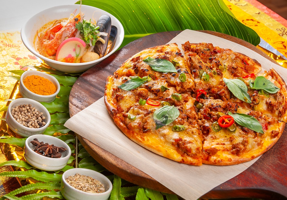 「泰式紅咖哩蟹」、「泰式打拋豬」、「泰式海鮮烘蛋」、「泰式涼拌花枝沙拉」等料理,皆展現酸香微辣的經典魅力,深受泰式料理愛好者青睞。另有東西合璧的創意菜,如「打拋豬肉披薩」與「薑黃炸雞」,搭配清爽又解暑的「泰式奶茶」,讓饕客輕鬆享受多道經典南洋風味。