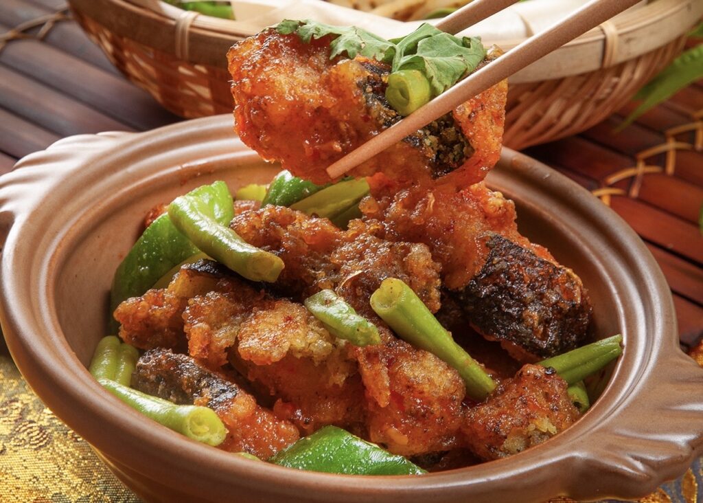 主廚特製的「南洋肉骨冬瓜雞湯」融合新馬華人肉骨茶的深厚底蘊,加入台灣冬瓜,湯頭溫潤甘甜,兼具藥膳與清爽風味。人氣招牌「南洋叻沙麵」及「南洋叻沙魚鍋」湯底濃郁滑順,再現南洋街頭的原汁原味。創意菜色「南洋是拉差炒錢鰻」選用鮮嫩錢鰻佐以微甜微辣的特調是拉差醬,口感層次豐富。「椰汁綠咖哩雞」以椰奶和香料慢燉,香氣濃郁,雞肉軟嫩入味。