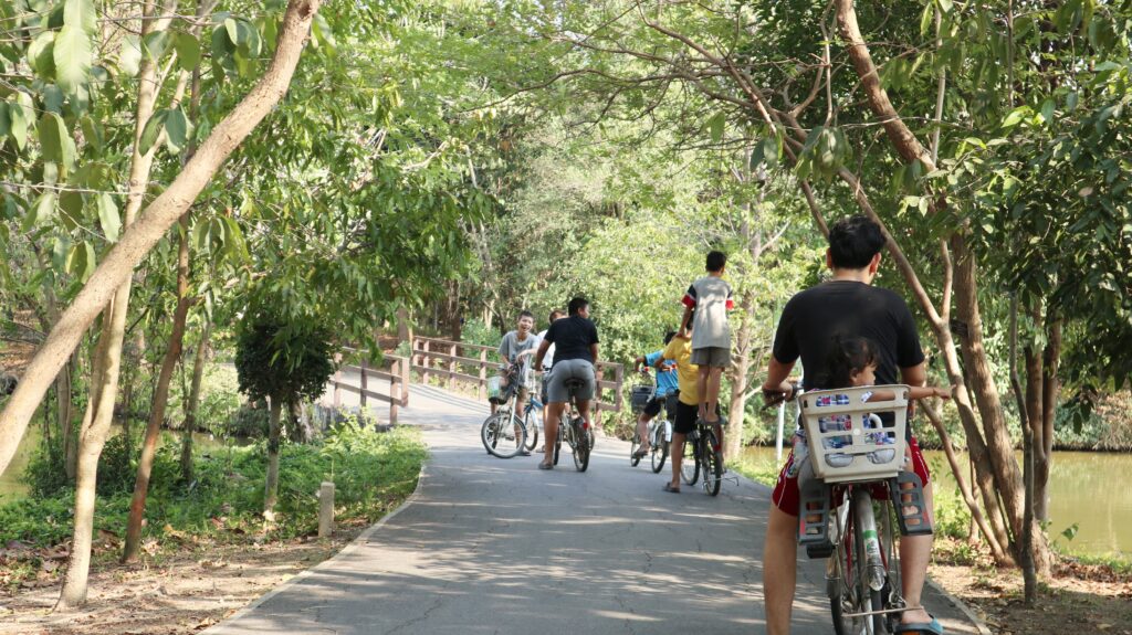傑菲亞娃將「邦喀造Bang Kachao」綠色旅遊分為兩個區域:1. 『邦南彭水上市場Bang Nam Phueng Floating Market』、2.『Sri Nakhon Khuean Khan Park and Botanical Garden』,兩點之間騎單車約莫15-20分鐘,誠心建議來到邦喀造租個自行車就能趴趴走囉,店家還會提供簡單路線圖,抵達目的地輕鬆又便利。